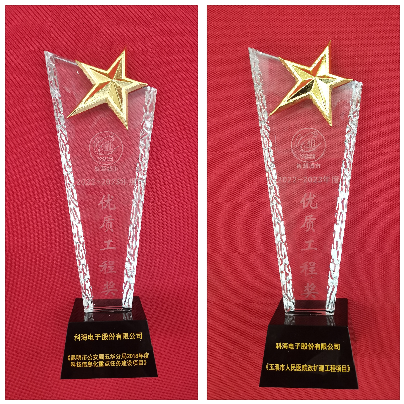 7月19日,云南省智慧城市集成服務(wù)商協(xié)會會員大會在昆明滇池國際會展中心召開,公司承建的“昆明市公安局某分局科技信息化項(xiàng)目”、“玉溪市人民醫(yī)院改擴(kuò)建工程項(xiàng)目(含門診醫(yī)技綜合用房和全科醫(yī)生臨床培養(yǎng)基地)建筑智能化工程”喜獲智慧城市優(yōu)質(zhì)工程獎,科海電子又添新榮譽(yù)!