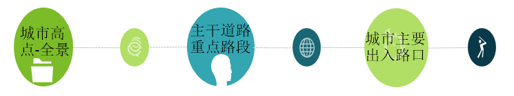 在城市路口高點(diǎn)部署全景攝像機(jī),其中主要路段進(jìn)行重點(diǎn)區(qū)域部署,在城市的主要出入口設(shè)置卡口。