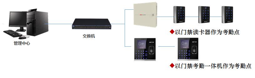 考勤管理系統(tǒng)通過綜合管理平臺(tái)實(shí)現(xiàn)與數(shù)據(jù)庫的數(shù)據(jù)交互,包括人員資料、卡片資料、刷卡數(shù)據(jù)等多種資料。硬件的設(shè)置、權(quán)限的發(fā)放以及人員的卡片發(fā)放等由綜合管理平臺(tái)統(tǒng)一完成。系統(tǒng)的架構(gòu)如下圖所示:
