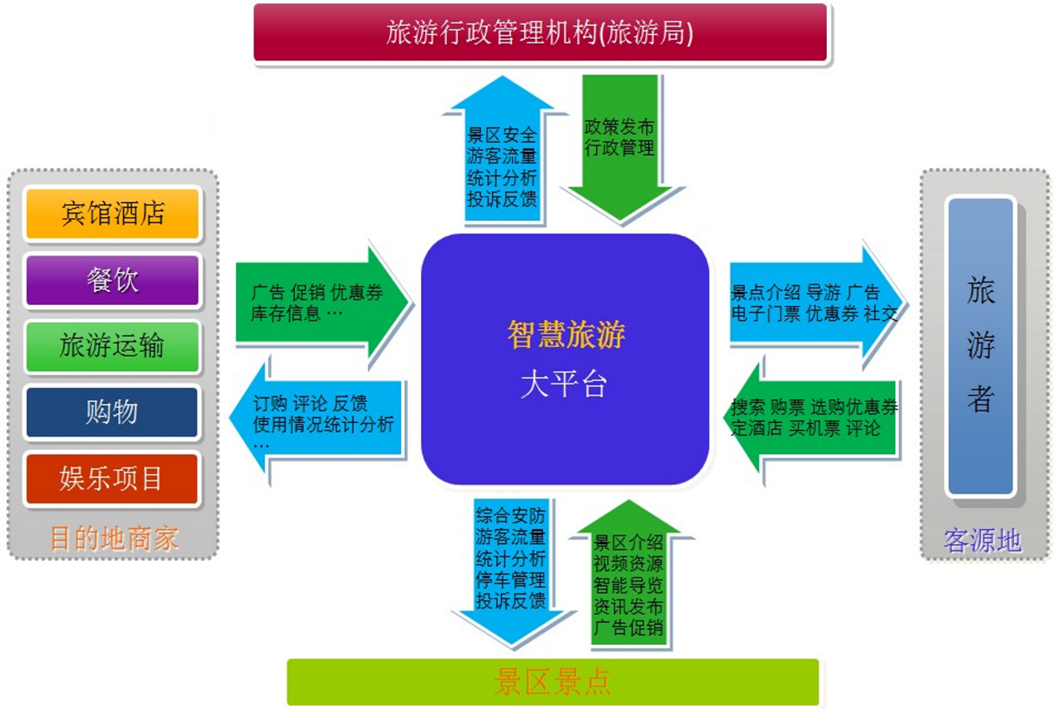 智慧旅游以數(shù)據(jù)中心和指揮調(diào)度中心建設(shè)為核心,以各業(yè)務(wù)應(yīng)用信息系統(tǒng)建設(shè)為紐帶,整合景區(qū)資源,實(shí)現(xiàn)信息共享,創(chuàng)新管理模式,變分散管理為協(xié)同聯(lián)動(dòng),變多級(jí)管理為扁平化管理,變粗放管理為精細(xì)管理,實(shí)現(xiàn)“資源保護(hù)智慧、經(jīng)營(yíng)管理智能化、產(chǎn)業(yè)整合網(wǎng)絡(luò)化”,以信息帶管理、以信息促保護(hù)、以信息增效益,全面促進(jìn)景區(qū)環(huán)境、社會(huì)、經(jīng)濟(jì)的可持續(xù)發(fā)展。