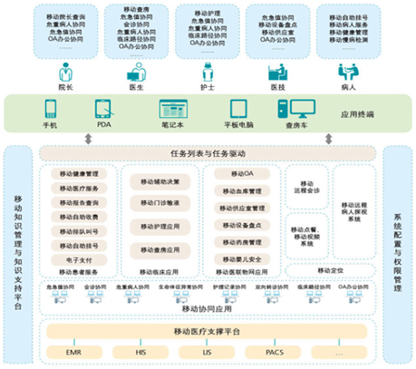 移動醫(yī)療就是通過使用移動通信技術(shù)——例如PDA、移動電話和衛(wèi)星通信來提供醫(yī)療服務和信息,具體到移動互聯(lián)網(wǎng)領域,則以基于安卓和iOS等移動終端系統(tǒng)的醫(yī)療健康類App應用為主。移動醫(yī)療解決方案基于移動計算、智能識別和無線網(wǎng)絡而設計,實現(xiàn)醫(yī)護移動查房和床前護理、病人藥品和標本的智能識別、人員和設備的實時定位、病人呼叫的無線傳達功能等。系統(tǒng)不僅可以幫助醫(yī)院優(yōu)化流程、提高醫(yī)療效率,同時可以幫助醫(yī)院實現(xiàn)“以病人為中心”的管理理念。